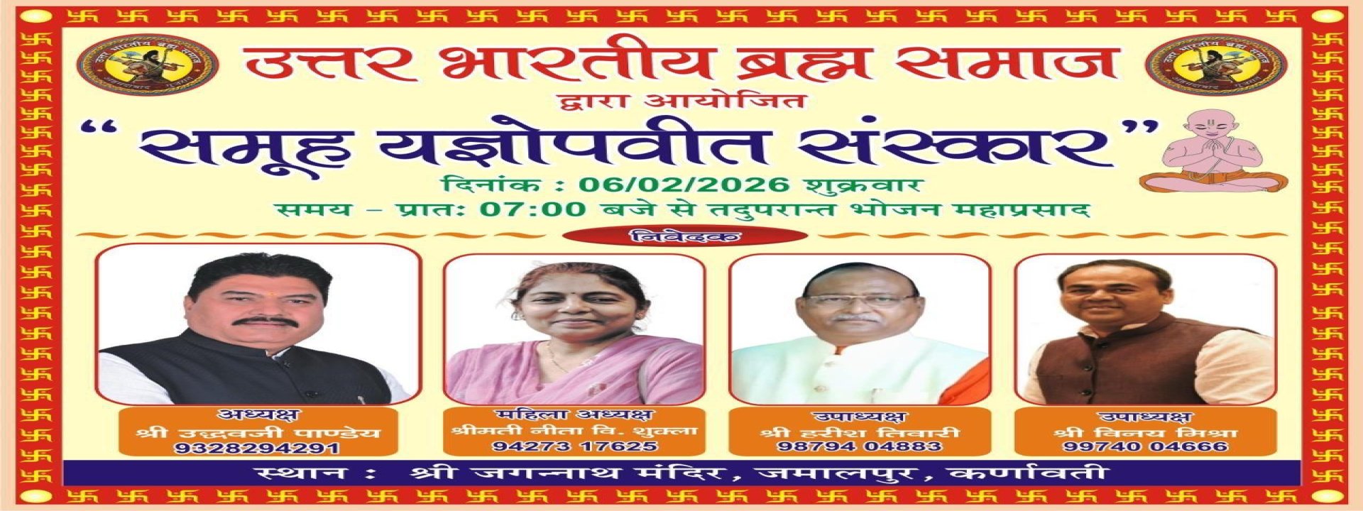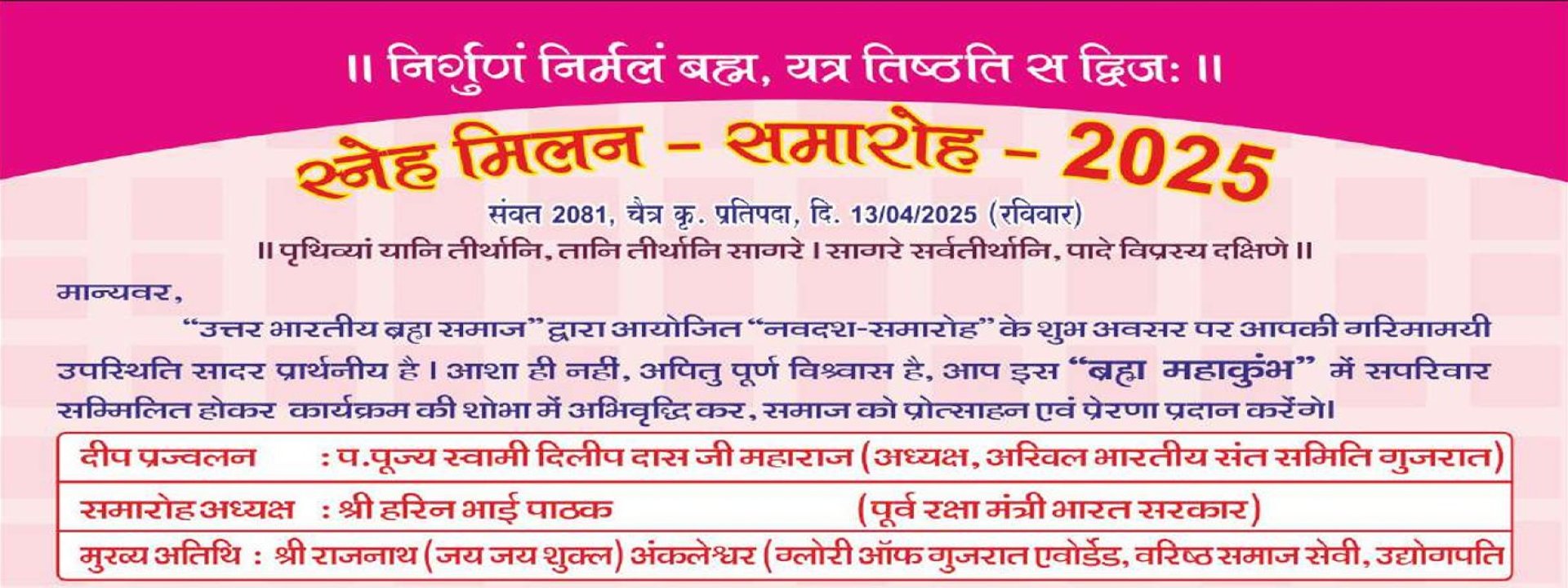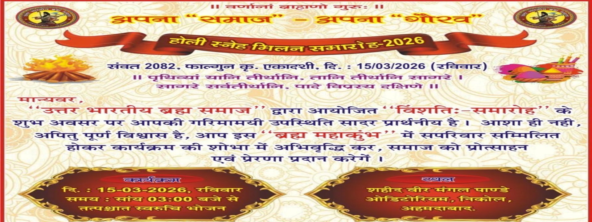 "उत्तर भारतीय ब्रह्म समाज'' आपका हार्दिक स्वागत करता है । कोई भी समुदाय ऐसे लोगों का समुच्चय होता है जिनमें भौतिक, मानसिक एवं व्यावहारिक साम्य हो । जीवन-पद्घति समान होते हुए भी एक बृहत् जनसंख्या वाले शहर में प्रकीर्ण रूप से रहने के कारण व्यापक रूप से विचारों का आदान-प्रदान संभव नहीं हो पाता है । व्यावहारिक अभाव के कारण उत्तरदायित्वों के निर्वाह में भी अगणित समस्याओं का सामना करना पड़ता है । एक लघु कालखण्ड इसी निष्क्रिय अवस्था में व्यतीत होता है । तत्पश्चात् कुछ प्रबुद्घ एवं सचेष्ट लोगों की विवेकपूर्ण सक्रियता एक समुदाय के गठन की ओर संचालित होती है और एक लघु इकाई के रूप में एक 'समाज' की रचना होती है, जो अन्योन्याश्रय द्वारा एक-दूसरे के प्रति सौहार्दभाव रखते हुए परस्पर सहायक बनते हैं । ऐसे समाज के मूल में होती है 'स्व' से ऊपर उठकर परार्थ की भावना जो उस समाज को अक्षुण्ण रखती है एवं लोगों के हितों की रक्षा करती है.